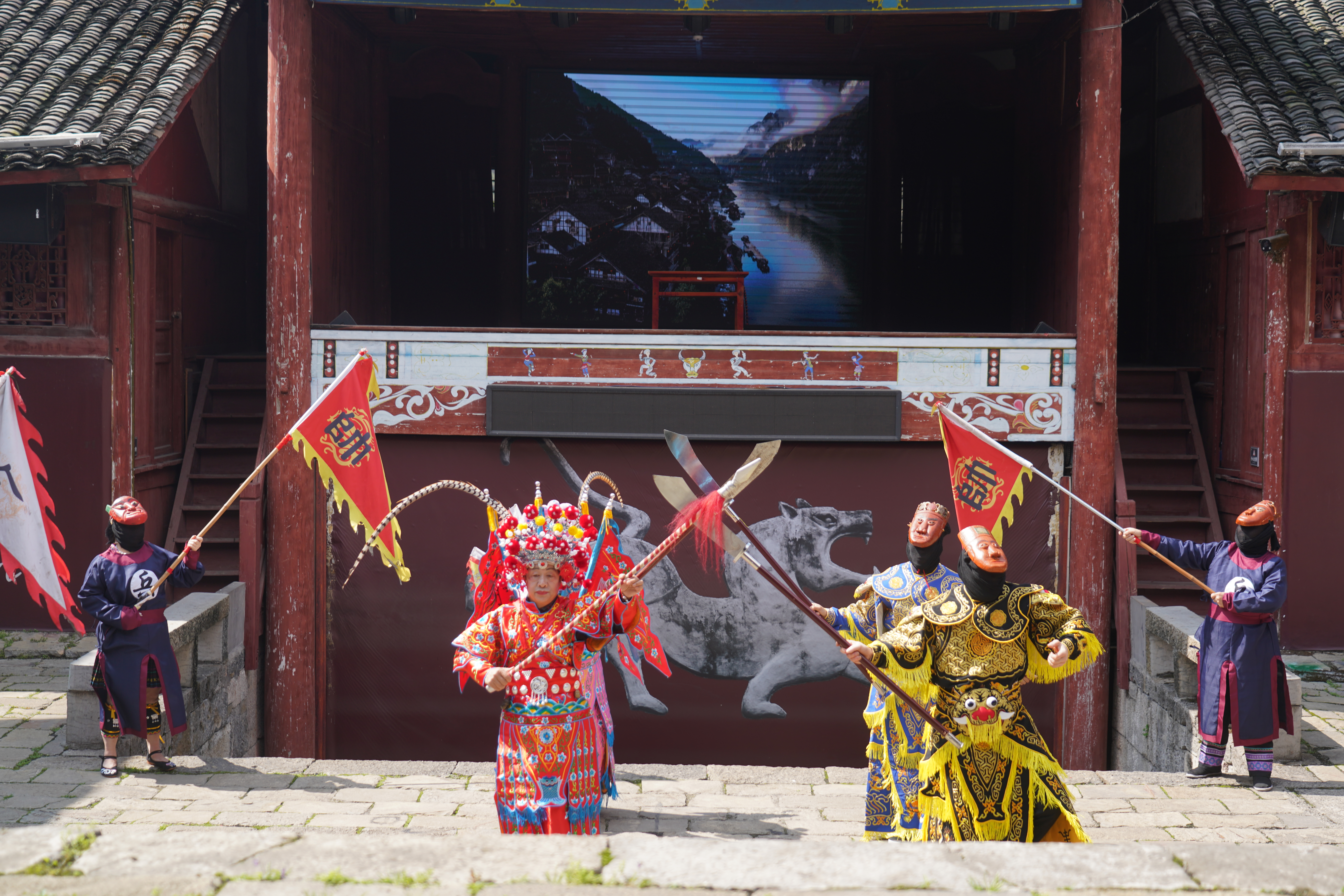 面具阳戏又名脸壳戏,其历史悠久、剧目繁多、曲牌丰富、唱腔独特、表演古朴,其仪式性、假面性、古朴性特点十分鲜明,在戏剧、宗教领域具有宝贵价值,被誉为中国戏剧的活化石20216月阳戏《酉阳土家面具阳戏》被国务院批准列入第五批国家级非物质文化遗产代表性项目名录。
