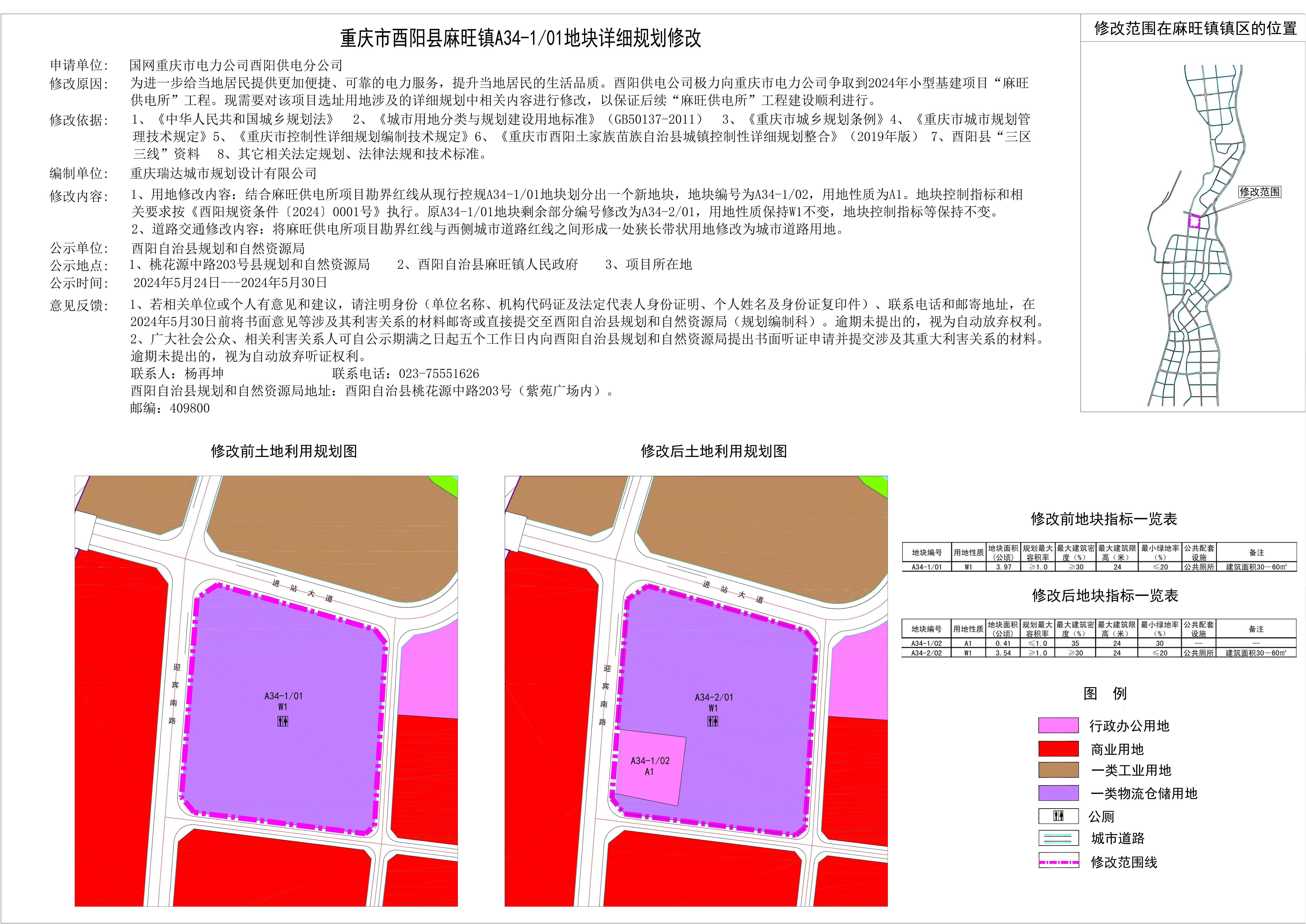 重庆市酉阳县麻旺镇A34-1/01地块详细规划修改公示