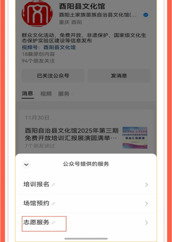 为进一步提升公共文化服务力量,优化文化志愿服务体系,更好地满足人民群众日益增长的精神文化需求,助力文化事业高质量发展,保障“十五分钟品质文化生活圈”的顺利创建,要求每个乡镇街道组织注册文化志愿者18名以上,并于2025年12月20日前完成,确保年度考核顺利达标。