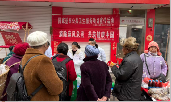 1月22日,车田乡卫生院结合赶集日与返乡潮,将国家基本公共卫生服务政策宣传与麻风病防治科普相结合,讲解健康档案管理、老年人体检、慢性病管理等惠民内容,同步普及麻风病防治知识,接待咨询60人次,发放资料110份。
