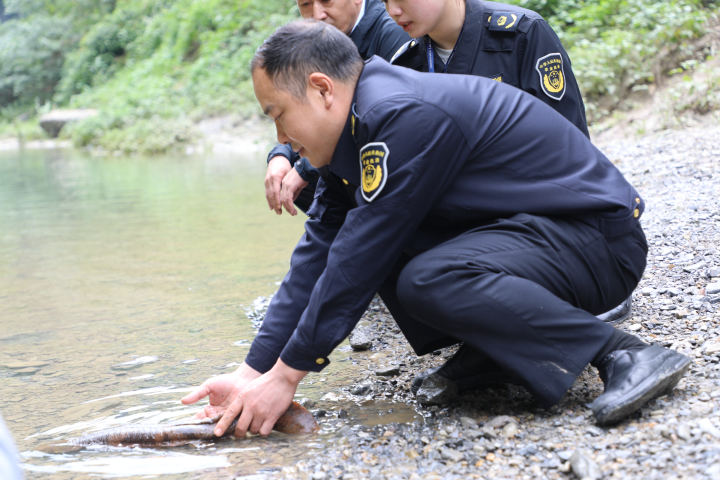 为确保娃娃鱼能够安全地回归自然,县农业农村委迅速组织了一支由生态学家、野生动物保护专家以及经验丰富的志愿者组成的放生团队对娃娃鱼进行了全面的健康检查,确保其身体状况良好,能够适应自然环境。随后,这条娃娃鱼被放生在溪流中。