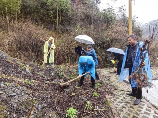 活动当天,该镇干部职工、志愿者、妇联代表、生态护林员,以及山羊村七职干部、村民组长、党员代表等,在山羊村1组、2组道路两旁、登山步道两侧及村民房前屋后栽植油茶与红宝石红枫。大家分工协作、配合默契,有的挥锹挖坑、有的扶苗培土、有的提水浇灌,现场一派热火朝天的劳动景象。