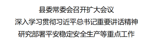 12月16日,县委常委会召开扩大会议,学习贯彻习近平总书记近期重要讲话精神和党中央、重庆市近期重要文件、重要会议精神,审议有关议题,安排部署近期重点工作。