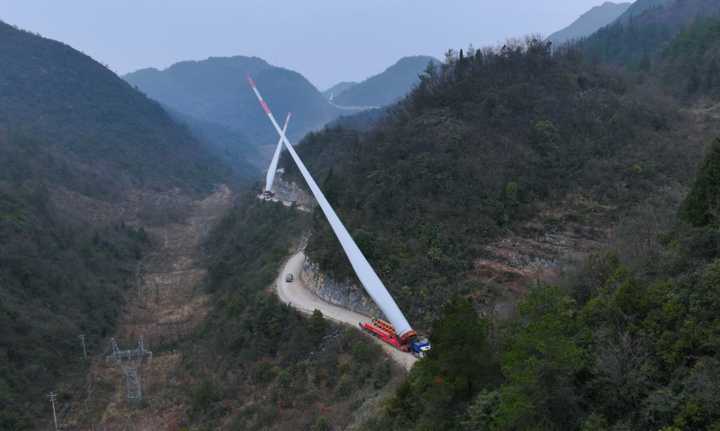 “今天现场正在开展第二批次风机的吊装,塔筒机舱吊装叶片运输,然后下一步计划是年前力争再完成一次1台风机的吊装。”华电重庆新能源公司项目经理胡永华介绍,重庆华电酉阳龙洞湾项目于去年8月现场开工建设,截至目前,现场已完成道路开挖10条、平台开挖9个、风机基础浇筑7基,首批次风机已吊装完成并网发电。