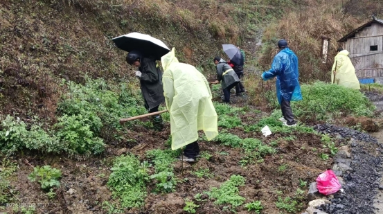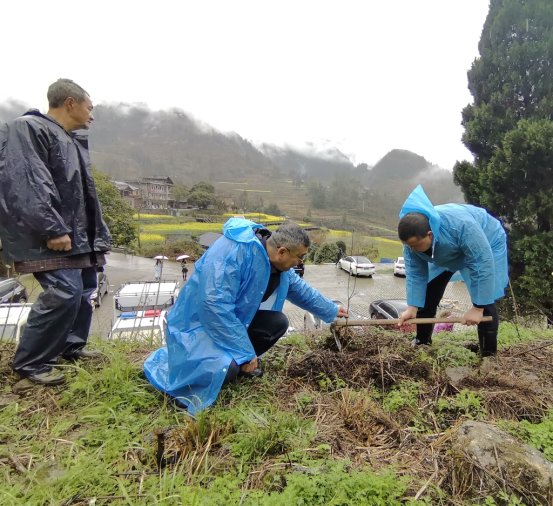 活动当天,该镇干部职工、志愿者、妇联代表、生态护林员,以及山羊村七职干部、村民组长、党员代表等,在山羊村1组、2组道路两旁、登山步道两侧及村民房前屋后栽植油茶与红宝石红枫。大家分工协作、配合默契,有的挥锹挖坑、有的扶苗培土、有的提水浇灌,现场一派热火朝天的劳动景象。