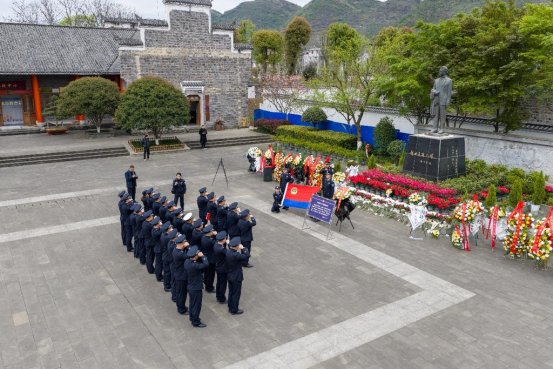下午3时,在县烈士陵园,全体民警代表整齐列队,来到革命烈士纪念碑前,向革命先烈敬礼。随后,两名民警手抬花篮缓步上前,向烈士敬献花篮,缎带上“革命烈士永垂不朽”的金色字样格外醒目。全体人员脱帽默哀,向革命先烈致以深切追思。默哀毕,大家依次缓步绕行纪念碑,敬献鲜花并敬礼瞻仰。