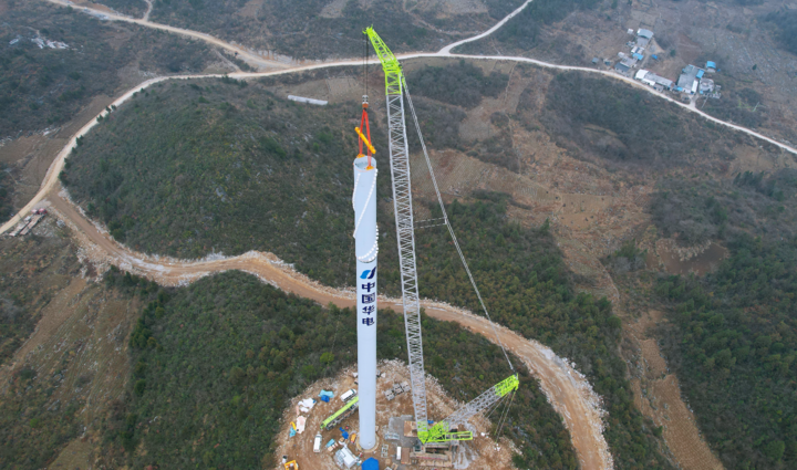 “今天现场正在开展第二批次风机的吊装,塔筒机舱吊装叶片运输,然后下一步计划是年前力争再完成一次1台风机的吊装。”华电重庆新能源公司项目经理胡永华介绍,重庆华电酉阳龙洞湾项目于去年8月现场开工建设,截至目前,现场已完成道路开挖10条、平台开挖9个、风机基础浇筑7基,首批次风机已吊装完成并网发电。