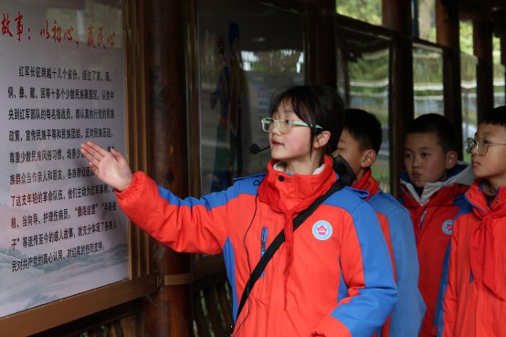 听着父亲的讲述,何冉静怡的眼睛亮了起来。她趴在展柜前,细细打量着那枚银圆,仿佛能透过锈迹看到当年罗大娘忙碌的身影,感受到红军战士与乡亲们之间沉甸甸的情谊。那一刻,红色故事不再是遥远的历史,而是有温度、有情感的真实过往,一颗热爱红色文化的种子,从此在她心里深深扎了根。“爸爸,我也要把这个故事讲给更多人听,让大家都知道红军和乡亲们的鱼水深情。”她拉着父亲的衣角,眼神里满是坚定。这份向往,让她在二年级时正式踏上了讲解之路,红三军司令部旧址里的青石板院坝,成了她的第一个“舞台”。