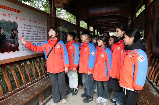 作为桃花源小学的少代会委员,何冉静怡把自己收集的游客反馈和讲解心得带到学校,在班级里开展红色故事分享会,将一枚银圆、大坝祠堂战斗、张素清侦察等故事一一讲给同学们听,手把手教小伙伴们调整语速、把握情感,还带着大家模拟讲解场景。在她的带动下,10余名同学加入了红色故事讲解队伍,让红色火种在校园里形成燎原之势。