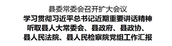 3月10日,县委常委会召开扩大会议,深入学习贯彻习近平总书记近期重要讲话精神和党中央、重庆市近期重要文件、重要会议精神,听取县人大常委会、县政府、县政协、县人民法院、县人民检察院党组工作汇报,审议有关事项,安排部署有关工作。