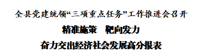 杨通胜强调,全县各级各部门要提高站位、认清形势,深刻认识党建统领“三项重点任务”的重大意义,深刻审视问题短板,深究问题根源,以刮骨疗毒、刀刃向内的勇气,整治目标导向消极、部门协同壁垒、激励约束失效等阻碍争先进位的问题。