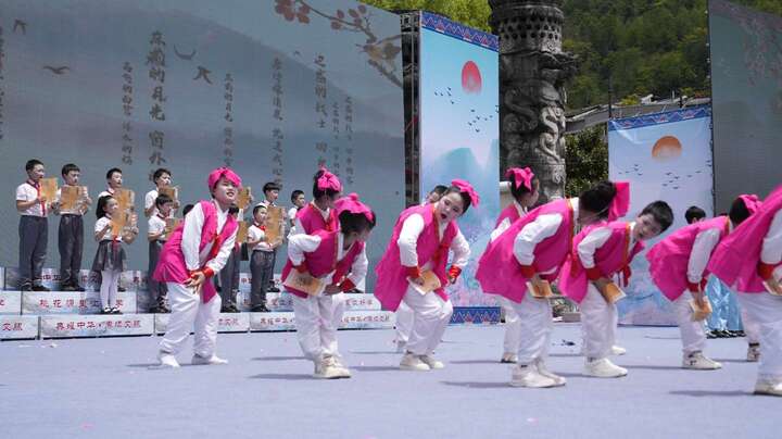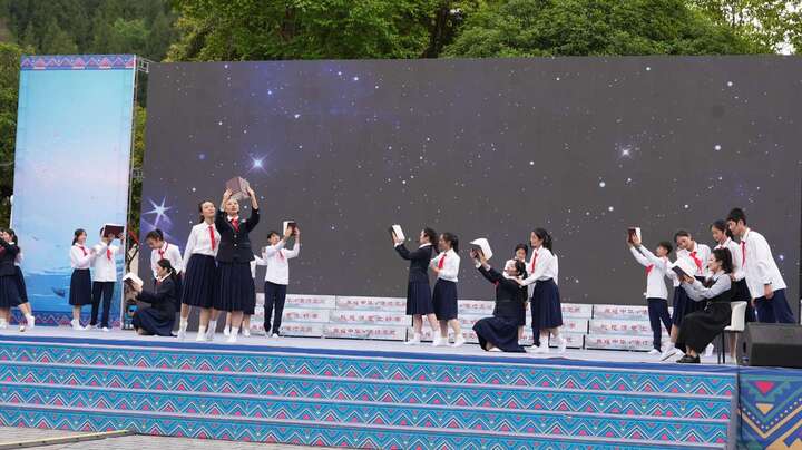 4月23日,在第31个世界读书日当天,由酉阳县教委主办、桃花源中学承办、县社科联等单位协办的“典耀中华·赓续文脉”2026年读书节成果汇报展演活动在桃花源广场举行。来自全县各中小学近千名师生代表齐聚现场,同台献礼书香盛会。