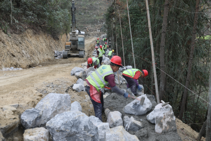 除了新建公路,花田乡老公路提档升级也在加快推进。在官生路,数十名工人正在用毛石混凝土砌筑堡坎,今后,这条路的路面将扩宽至6.5米,还将增加错车道。“从花田到何家岩村的官坝,原先这条路因为时间比较久了,坑坑洼洼的,现在正在施工当中,涉及3个组,修好后全村老百姓出行都非常方便。” 花田乡花田村综合专干何建军说,酉永高速(小坝至花田段)建成后,官生路不仅承担着周边几百名群众的出行,还将成为一条重要的旅游通道。