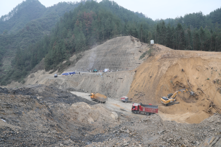 连日来,花田乡新集镇的环形公路正在进行路基开挖、边坡治理作业。