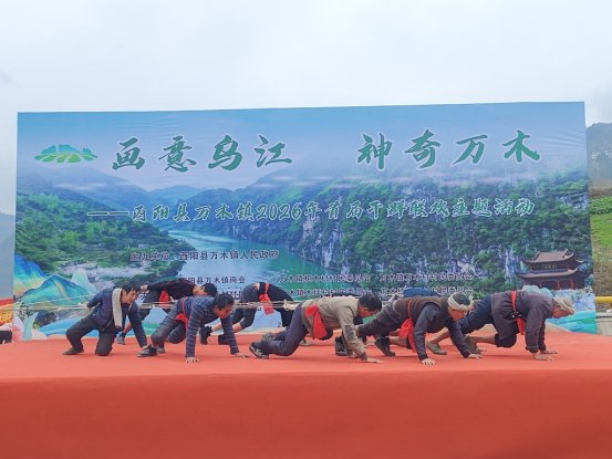 柜木村带来的《纤夫号子》更是震撼全场。汉子们身着朴素工装,弯腰、发力、前行,模拟乌江纤夫拉船的劳作场景,高亢激昂的号子声穿透现场,既复刻了临江儿女不畏艰难的奋斗史,也让观众深切感受到先辈们的实干豪情。“我们过去拉船是为了维持生活,现在生活条件好了,不再需要拉船了。今天表演号子是想让下一代知道,好日子是拼出来的。”村民田永培的感慨引发共鸣。