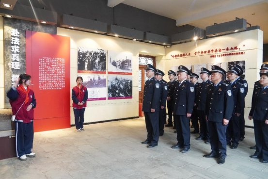 在赵世炎烈士纪念馆广场,全体人员在赵世炎烈士塑像前向烈士敬礼、脱帽默哀、敬献鲜花,深切缅怀革命先烈的丰功伟绩。随后,全体人员面向警旗,高举右拳,重温人民警察誓词,铿锵誓言表达了赓续红色血脉、忠诚履职尽责的坚定决心。仪式结束后,大家来到赵世炎烈士陈列馆,驻足参观珍贵文物、历史资料与文献展品,认真聆听革命先烈的英勇事迹。