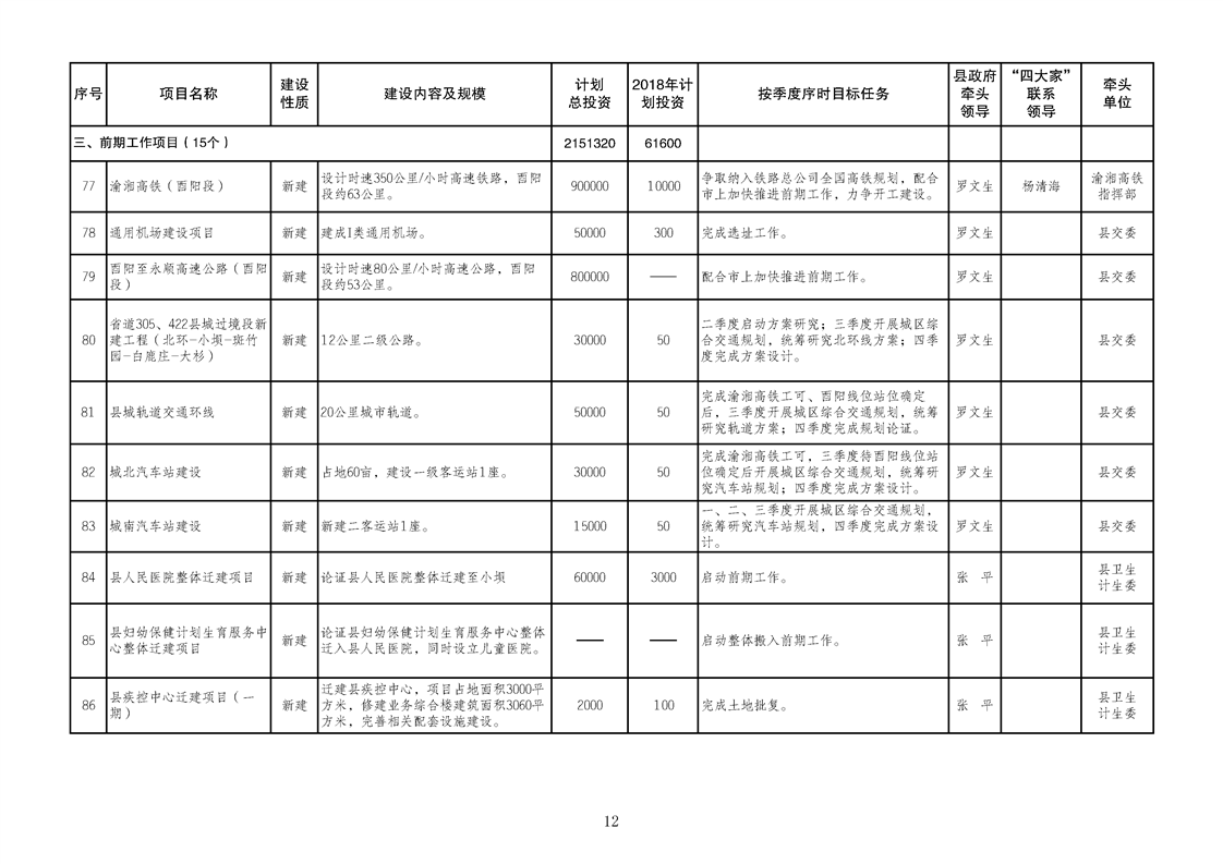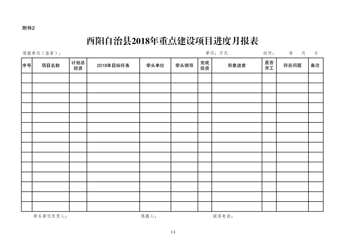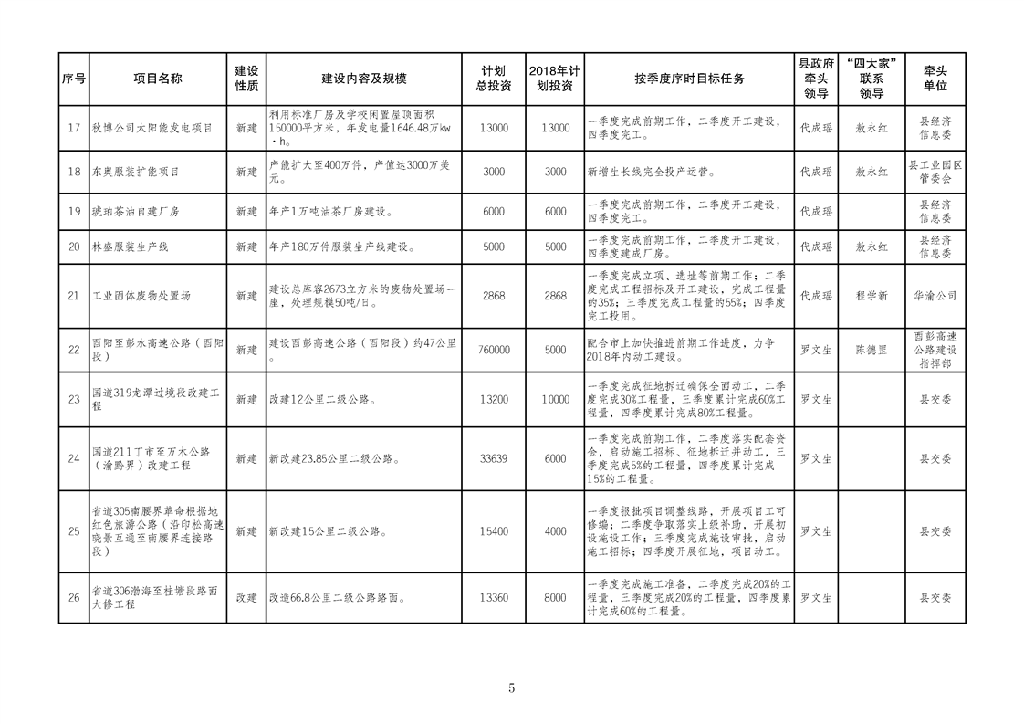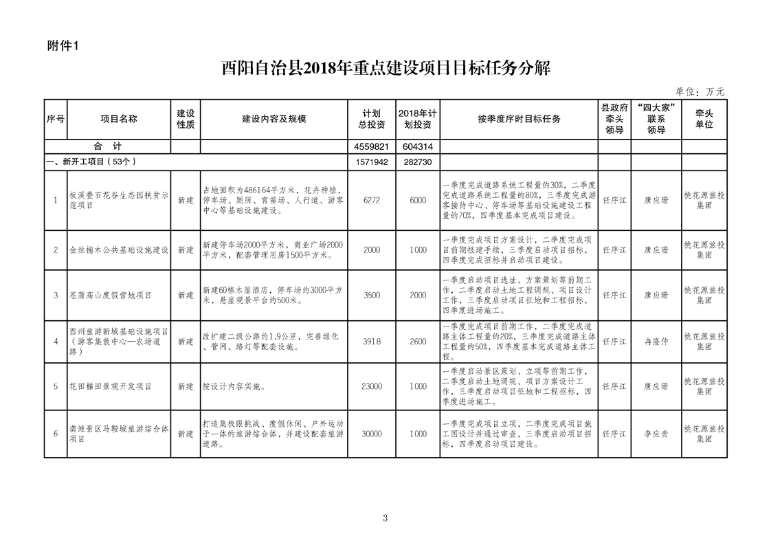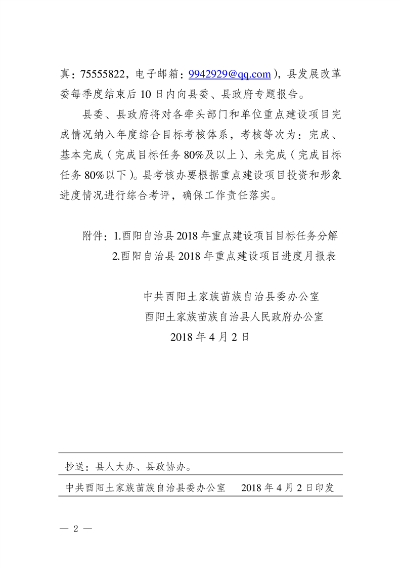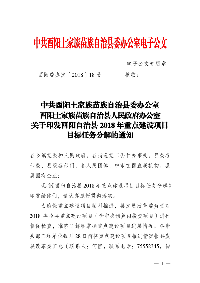 中共酉阳土家族苗族自治县委办公室 酉阳土家族苗族自治县人民政府办公室关于印发酉阳自治县2018年重点建设项目工作任务分解的通知