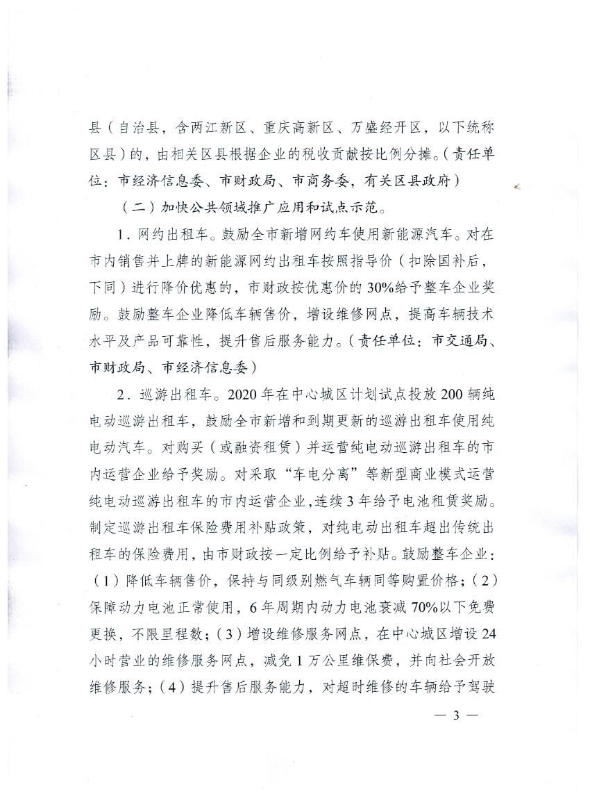 关于印发重庆市支持新能源汽车推广应用激励措施(2020年度)的通知